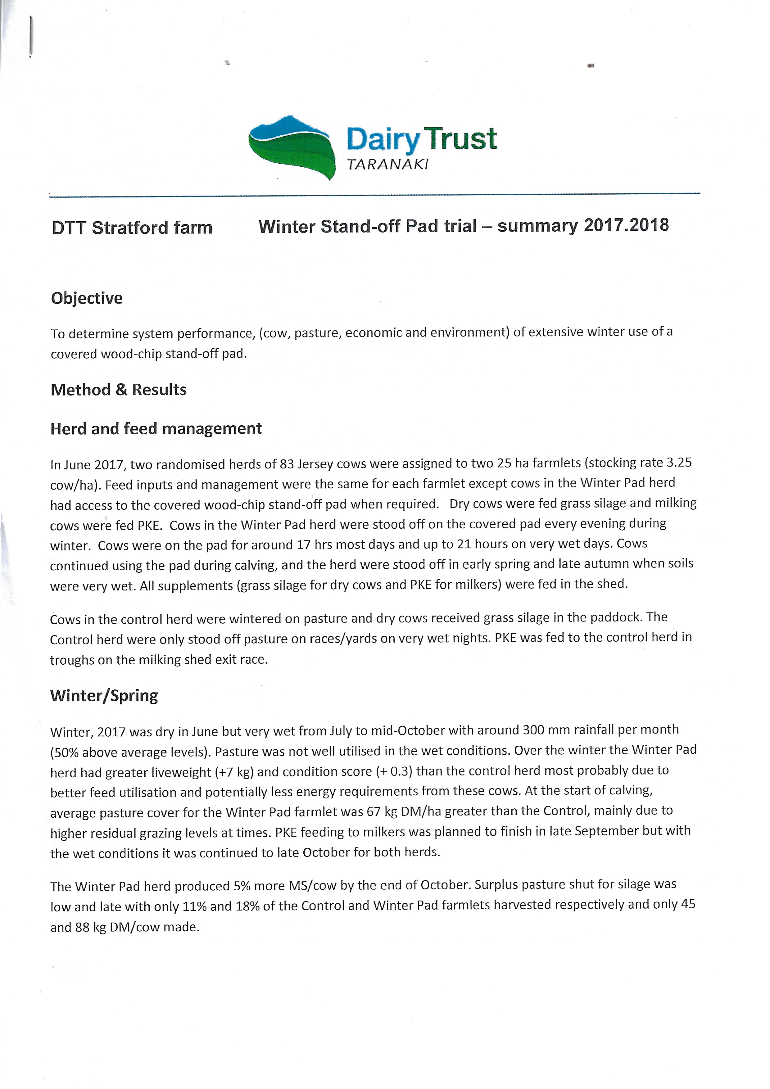 Winter Stand-off Pad Performance Trial – Dairy Trust Taranaki